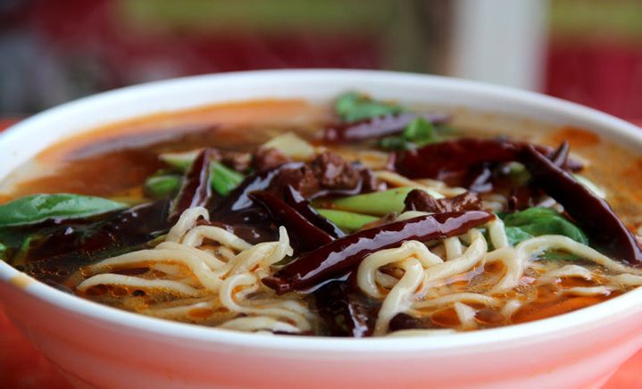 牛肉板面歷史悠久,是源自安徽省的漢族特色小吃。后來由于其口味獨特,被迅速傳入各地。實惠加美味是地道牛肉板面的特色。牛肉板面特色小吃的口味關(guān)鍵在于那里邊的幾十種的配料,每一種料子都是經(jīng)過師傅精心選擇的,還要講究做料的程序和火候,大火也不行,小火也做不出香味。每個階段的用火都是不同的。面湯中熬制多種材料還可以清澈見底,面條內(nèi)配上青菜,紅/白/綠三色讓面條看著更有食欲,所以才得以美名。牛肉板面源于安徽太和,面光滑勁道,湯濃味好,咸鮮香辣襲人。料由20多種香料、辣椒、牛肉、牛油等經(jīng)精心熬制而成。淮南的做法是把干紅椒用溫油炸至半糊,然后把鹵牛肉、鹵過牛肉的湯一直倒進(jìn)辣椒和油里,大火煮開后慢火燜,煮到入味。做好以后最好吃的就是那個辣椒 。